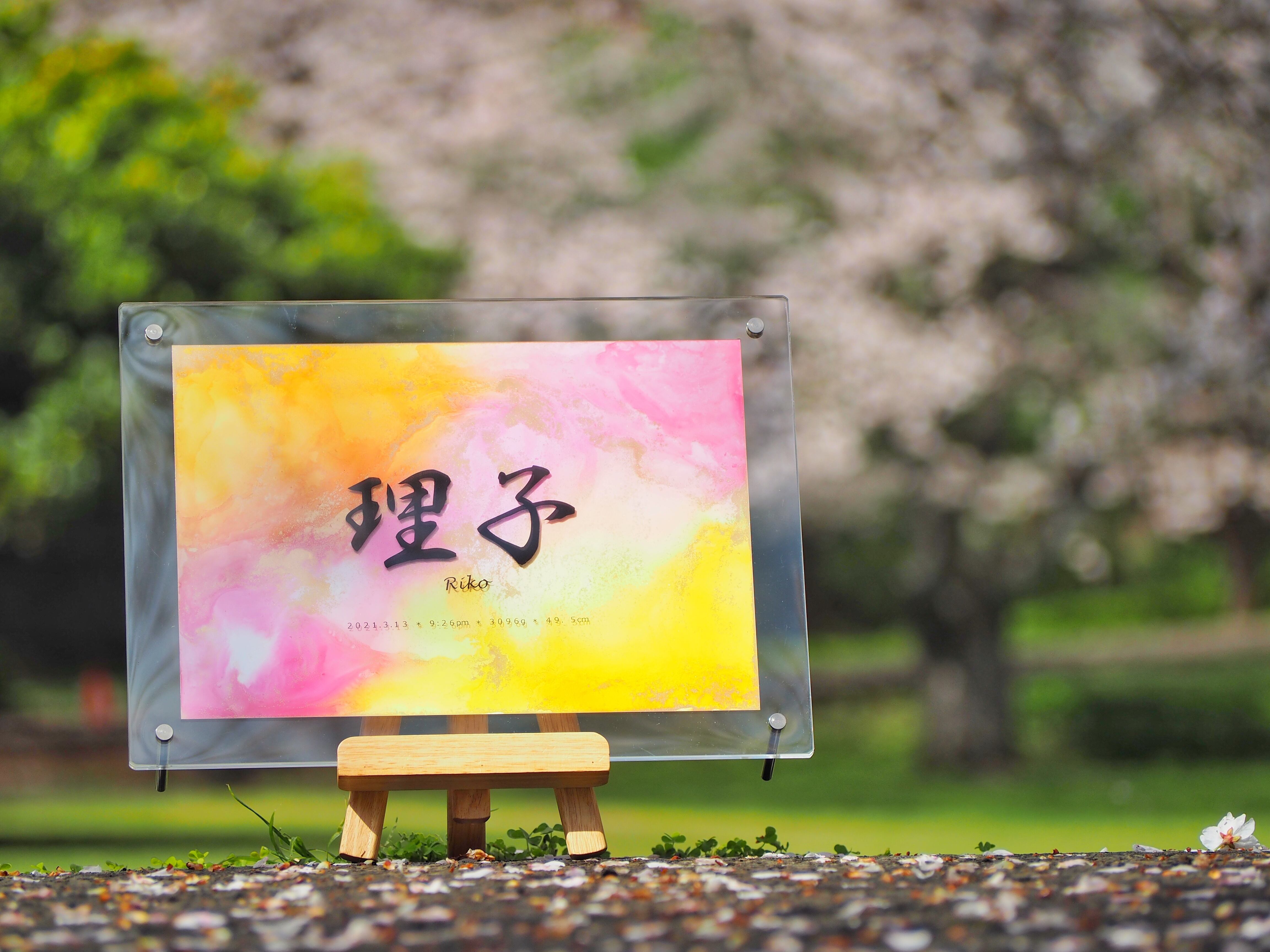 【ふわり】アート命名書オーダー * ポストカードサイズ *アクリルフレーム