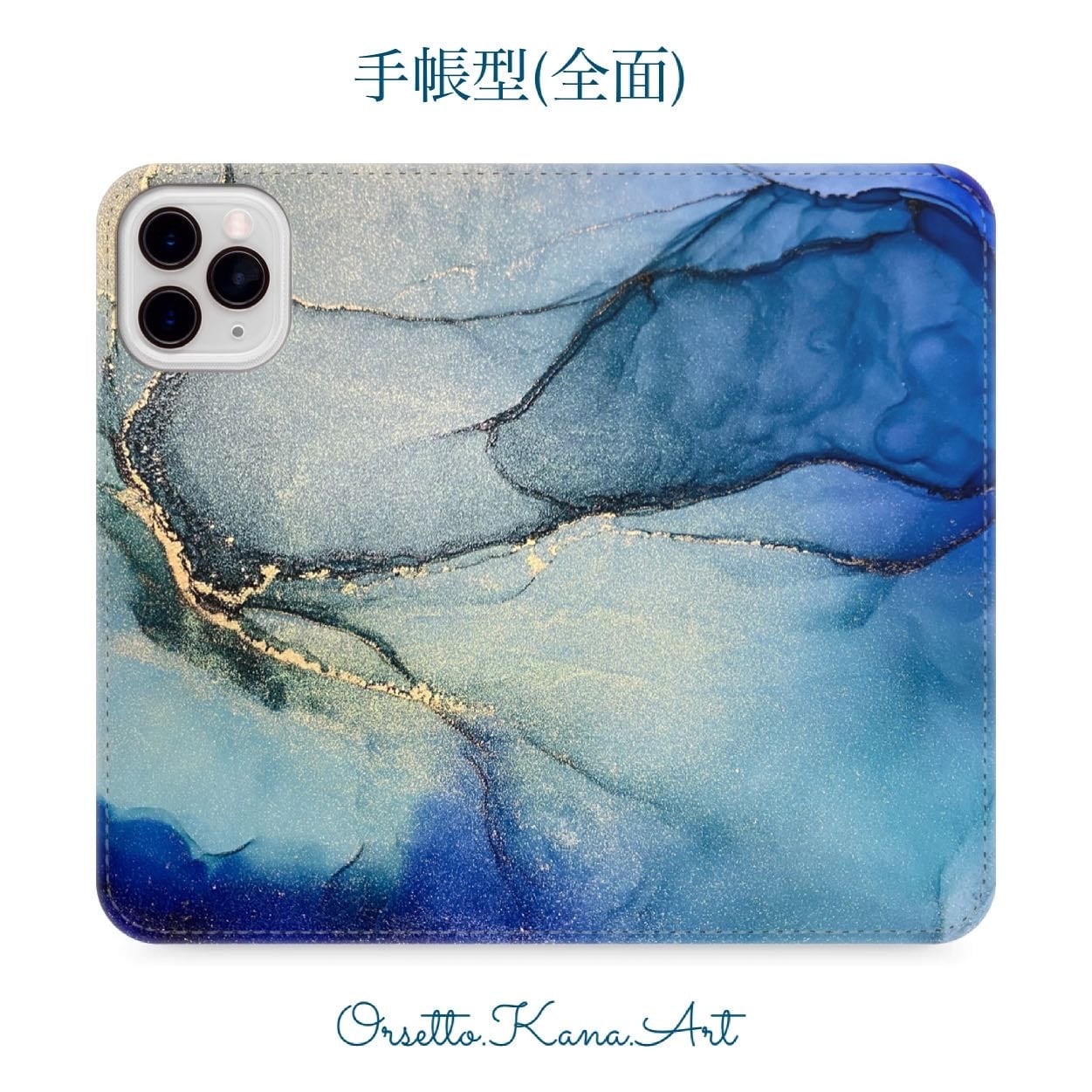 アルコールインクアートを印刷した手帳型スマホケースです。