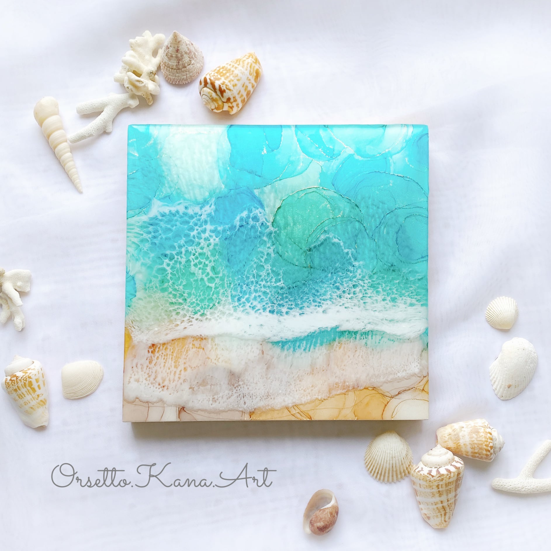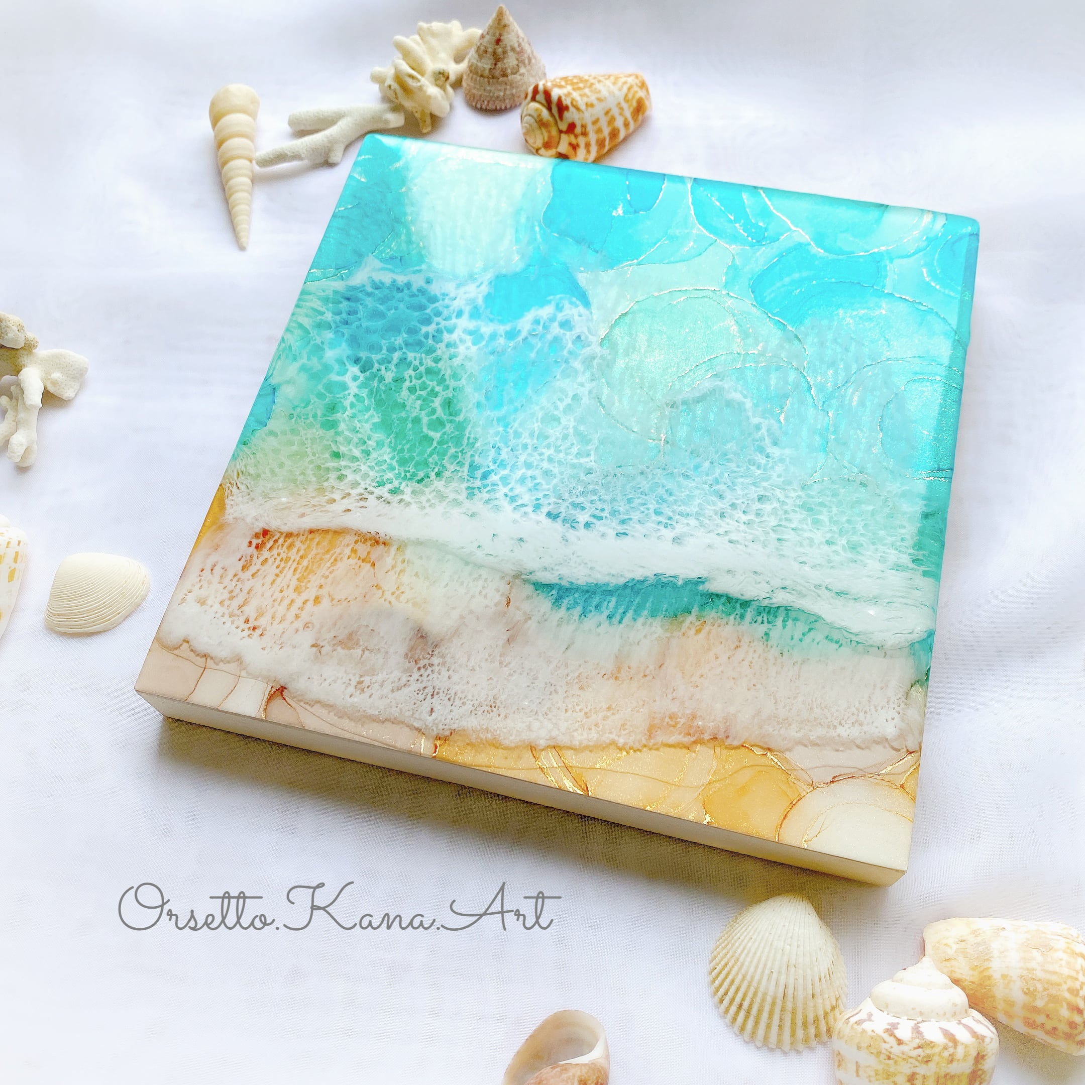【素材】アートペーパー、アルコールインク、木製パネル、レジンアート(3層)